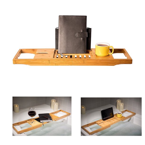 Rated 4.68 out of 5 based on 22 customer ratings. Self care gifts for women, birthday gift for mom. After spending over a month remodeling our downstairs bathroom all by myself, you'd think i'd want to spend. The bamboo bathtub tray, caddy wooden bath tray, table with extending sides, reading rack, tablet holder, a cell phone tray, and wine glass holder. Of course, that's just to keep kids on the shore a little longer. 1.5'' h x 8.8'' w x 29.3'' d. These simple tub trays keep your book, tablet, phone and drink above water so you can enjoy a relaxing soak. Simply add your select items onto the bath caddy tray and place it on the edges of the bathtub. Deluxe farmhouse bathtub caddy reclaimed wood. 4.1 out of 5 stars, based on 16 reviews 16 ratings current price $20.97 $ 20. ( 22 customer reviews) $ 45.97. If you love taking baths, it's a must, and making one won't take much time while turning your bathroom into a spa. Steel adjustable bath tub caddy spa tray read book stand wine glass holder rack.